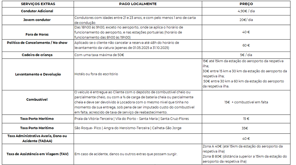 O preço apresentado tem por base as datas e horas de início e fim do período de aluguer que o cliente selecionou, na estação de aluguer, na duração do período de aluguer e no tipo de veículo selecionado. O mesmo será aplicado aos extras opcionais (cadeira de bebé, condutor adicional, pacotes de redução de franquia, equipamento Wi FI ou outros).